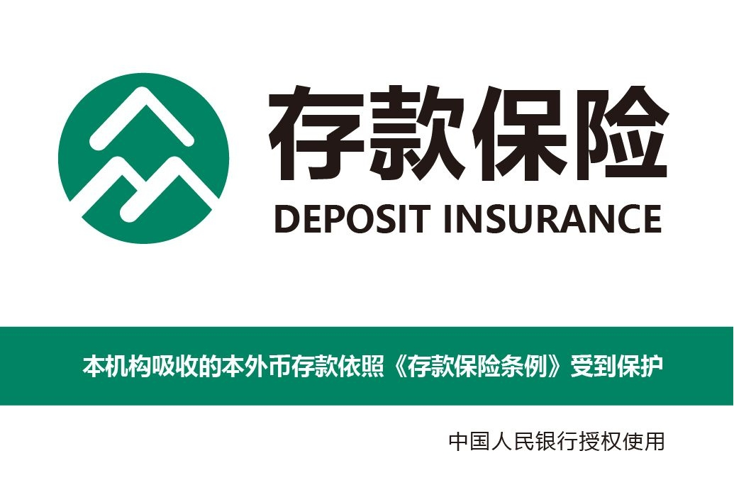 本机构吸收的本外币存款依照《存款保险条例》受到保护。所有参加存款保险的金融机构都经中国人民银行授权使用如下存款保险标识。参加存款保险的金融机构名单可在中国人民银行网站查询(网址:www.pbc.gov.cn)。