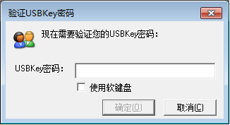 输入企业网上银行证书USBKey密码后点击确定。该密码默认为“12345678”,建议您通过“网银助手”进行修改。