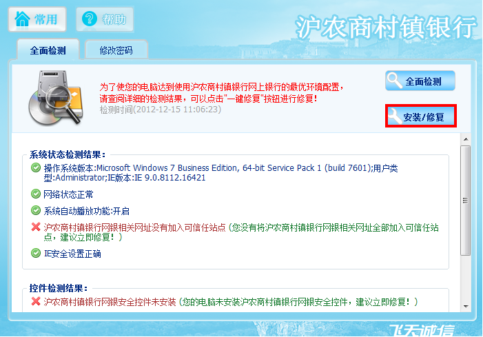 点击“安装/修复”按钮完成安装