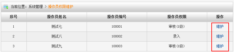 2. 选择您要设置的操作员姓名,点击“维护”进入设置界面。