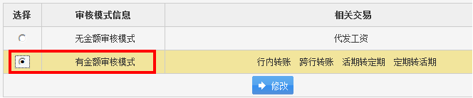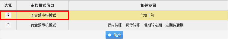 2. 选择有金额审核模式,再点击“修改”